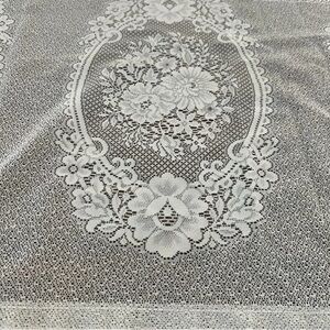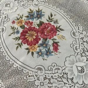 Vintage Victorian embroidered lace table runner farmhouse cottagecore
