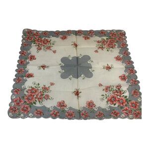 Vintage Victorian scalloped edged floral handkerchief Flowers Gray Pink Scarf