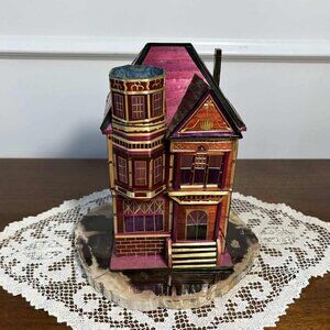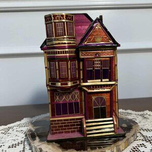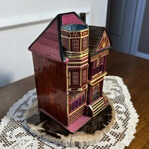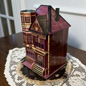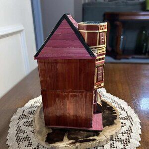 Made from balsa wood and wheat straw marquetry. Red cloth interior. Excellent.