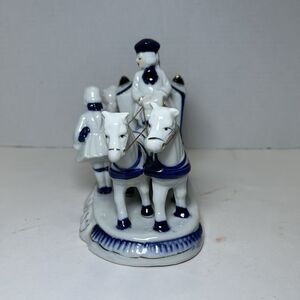 The Vintage George and Martha Washington Porcelain Figure is a classic collectible figurine depicting the iconic figures in a blue and white color scheme. Made of porcelain and standing at 8 inches tall, this glossy finish figurine is part of the Historic Character Family collection. While it is not signed or customized, it is a beautiful addition to any decor, showcasing the timeless beauty of George and Martha Washington in a detailed and elegant design.