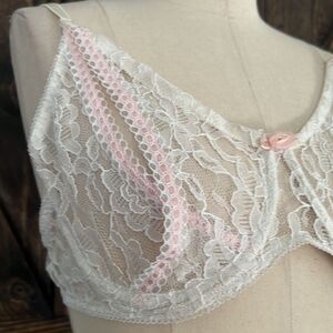 Vintage Victorian lace front slit lace cup lingerie bra Sz-36