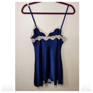 Vintage Victorias Secret 90s Y2K Blue White Lace Trim Slip Dress