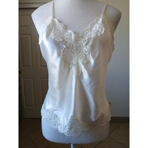 Vintage Victoria's Secret Beige Lace Trim Satin Cami Tank Top Y2K 90's Medium
