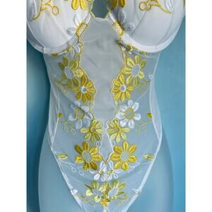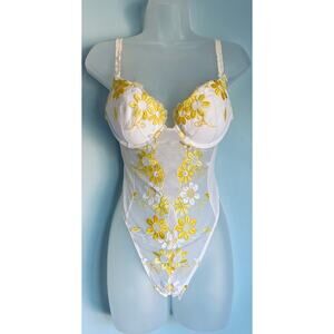 Vintage Victoria's Secret Bodysuit Yellow and White Push Up 36B