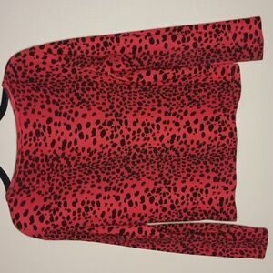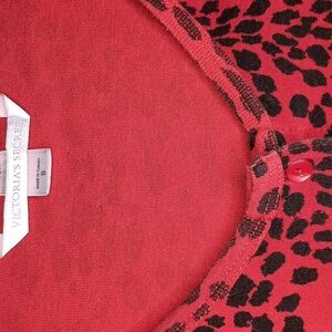 Vintage Victoria's Secret Button Down Cardigan in Red and Black Animal Print. Super Soft 100% Cotton. Only callout is some loose thread on the front placket, see 4th photo. Otherwise, Excellent Condition.