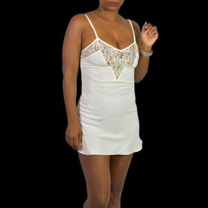 Vintage Victorias Secret Chemise Slip White 90s Y2K Mini Gold Label Nightie XS