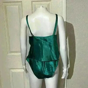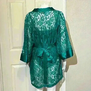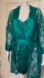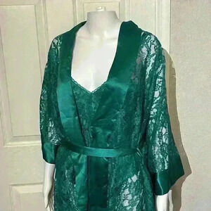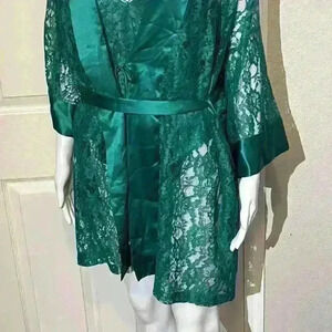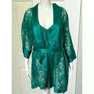 Vintage Victoria’s Secret Gold Label 3 Pc Set Robe Kimono Lace Green Satin Panties Top