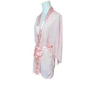 VICTORIA'S SECRET Floral GOLD LABEL Blush pink Short Robe Kimono Vintage EUC (One Size)