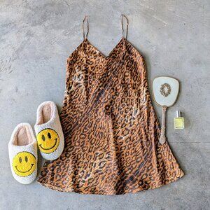 Vintage Victoria's Secret Gold Label Brown Leopard Print Silk Chemise Slip