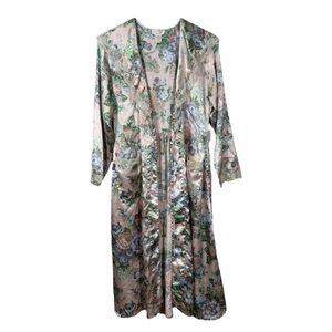 Vintage Victoria's Secret Gold Label Floral Satin Robe M Pink Lace Long Duster