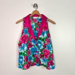 Gorgeous, vibrant sleeveless VS pajama top. Vintage 90s floral pattern in pink, blue, white green