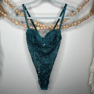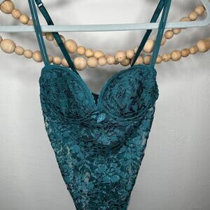 Vintage Victoria's Secret Gold Label Green Lace Lingerie Bodysuit