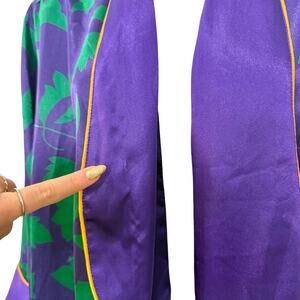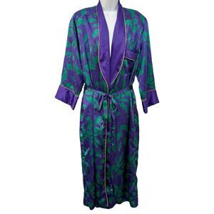 Vintage Victoria's Secret Gold Label Green Purple Satin Wrap Robe size S / M