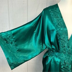 Vintage Victorias Secret Gold Label Kimono Robe O/S Belted Satin Kelly Green 90s