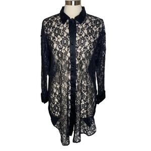 Vintage Victoria's Secret Gold Label Black Lace Button Up Shirt Dress Women's Small Whimsygoth Goth Witchy
