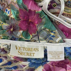 Vintage Victorias Secret Gold Label Lingerie Medium Teddie Floral Sheer Ruffle