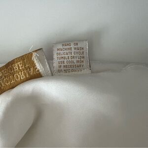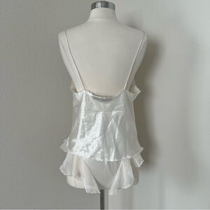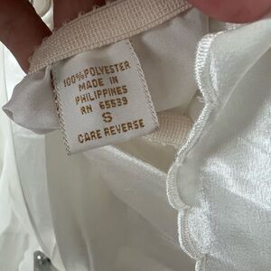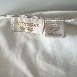 Vintage 1990s Gold Label Victoria’s Secret lingerie set in Small. Satin material with ruffle sheer detail on shorts and top of the cami. Beautiful flowers with some beadwork IN TACT on the cami. There is a small area of discoloration in the bikini area which is pictured, it’s very faint but hopefully you can make it out in the two photos of it! The elastic is in perfect condition on the shorts.