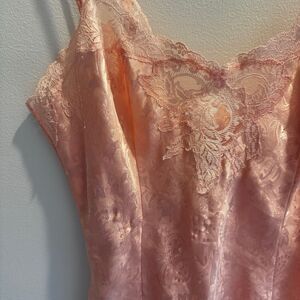Vintage Victorias Secret Gold Label Medium Slip Dress Satin Chemise Pink Lace