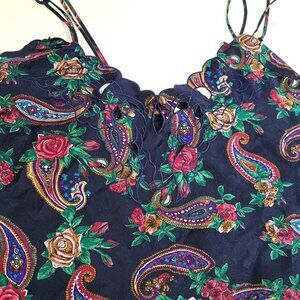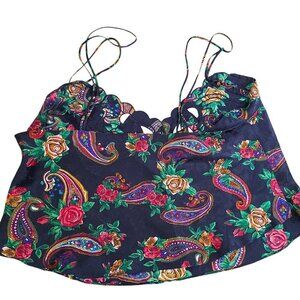 Vintage Victoria's Secret Gold Label Navy Blue Paisley Floral Crop Strappy Satin Top