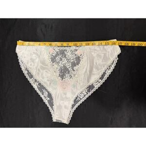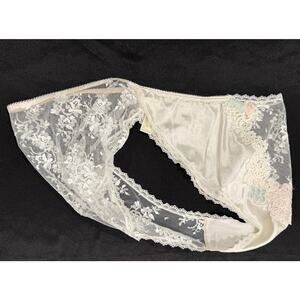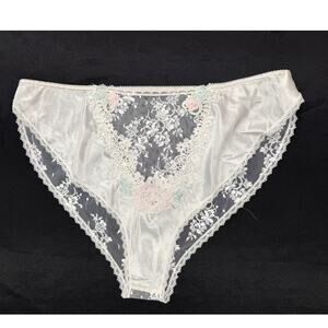 Vintage Victoria's Secret Gold Label Panties Sz M White Satin Lace Sheer Floral