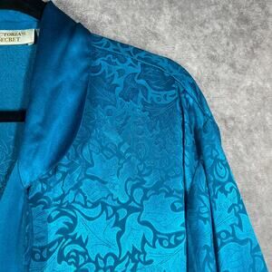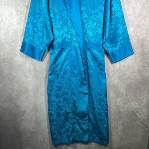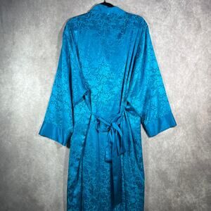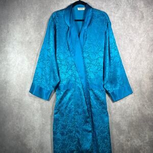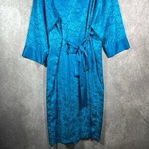 Vintage Victoria's Secret Gold Label Robe Womens Size Large Blue Floral Jacquard