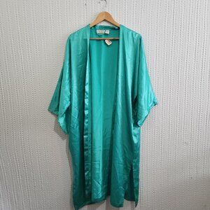 Vintage Victoria’s Secret Gold Label Satin Teal Kimono Robe One Size