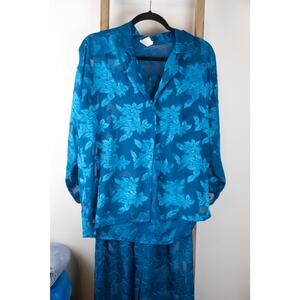 Vintage Victoria's Secret Gold Label Sheer Floral Teal XS Pajama Set Lingerie