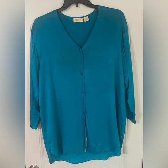 Vintage Victorias Secret Gold Label Silk Emerald Green Kimono Nightgown Size M/L