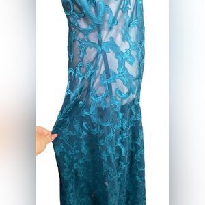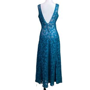 Scoop neckline, deep v-back, semi sheer, midi/maxi length, sleeveless. Gorgeous jewel tone.