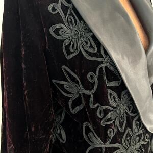 While this robe has been previously owned/loved, it does have some flaws where velvet has some color variation/fading. There is also some stitching on inside lining that was done to repair the ribbon embellishment on outer back/shell. Please zoom in on images for details. This is still quite an exquisite Victoria's Secret robe. A true statement piece for any lover of vintage fashion.