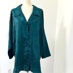 Vintage Victoria’s Secret Gold Label Dark Teal Jacquard Sleep Shirt Gown M/L