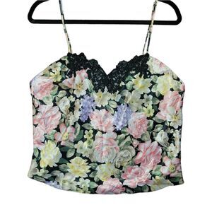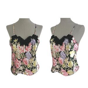 Vintage Victoria’s Secret Gold Label Floral Silk Satin Top Camisole Tank Lace L