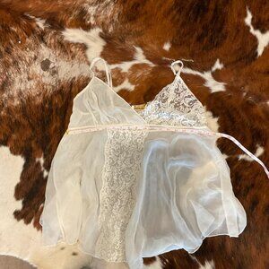 Vintage Victoria's Secret Gold Sheer Lace Babydoll Mini Slip Dress Size M White