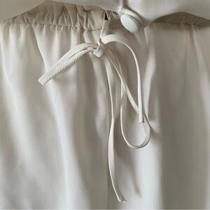 Vintage 80s Victoria Secret ivory loungewear romper, with lace trim, an elastic waist, and three snaps in the gusset for closure.