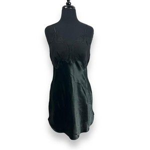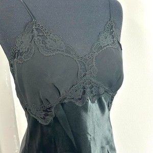 Black slip with lace and mesh bust, silky body. Gold tag estimated from the 80s/90s.
