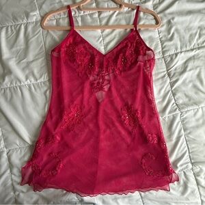 #VictoriasSecret #VintageLingerie #Y2KStyle #HotPink #MeshSlip #SheerLingerie #EmbroideredLace #VSCollectible #RomanticStyle #SizeSmall