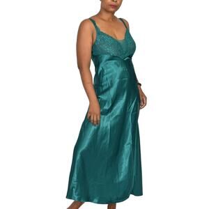 Vintage Victorias Secret Nightgown Green Satin Maxi Slip High Slit Gold Label XS