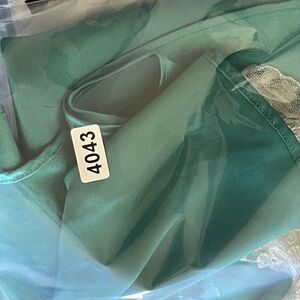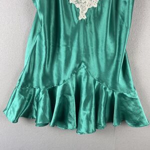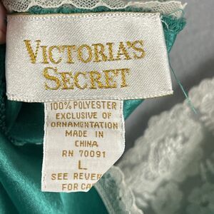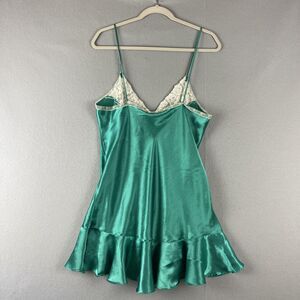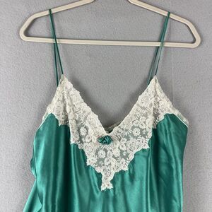 Vintage Victorias Secret Nightie Womens Large Green Satin Lace Gold Label Fairy