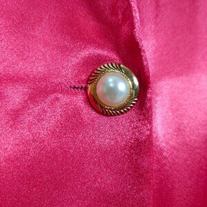 Vintage Victorias Secret Pajama Set Hot Pink Magenta Satin Blazer & Pants Size S