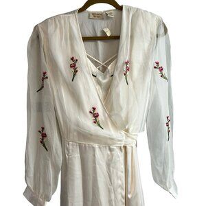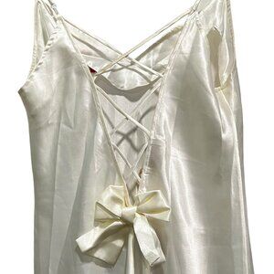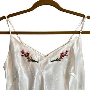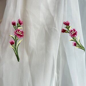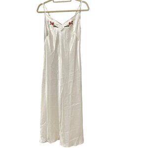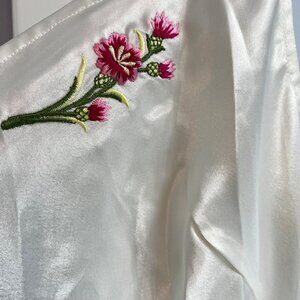 A charming Victoria's Secret vintage nightgown and robe set with delicate floral embroidery. The set features lace-up back details and a sash for an elegant fit.