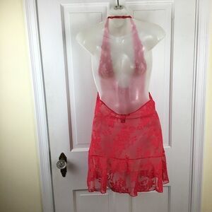 Vintage Victoria’s Secret Plunge Sheer Mesh Lace Halter Babydoll