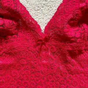 The cutest red lace bralette from Victoria’s Secret, dated 2002 so it’s vintage! Cute coquette bow at the front. Adjustable straps and has a little stretch. So cute worn as a top, it’s slightly see through but could be worn with a bra or pasties. Would also be adorable layered over a white tee. In perfect condition, no flaws at all!
