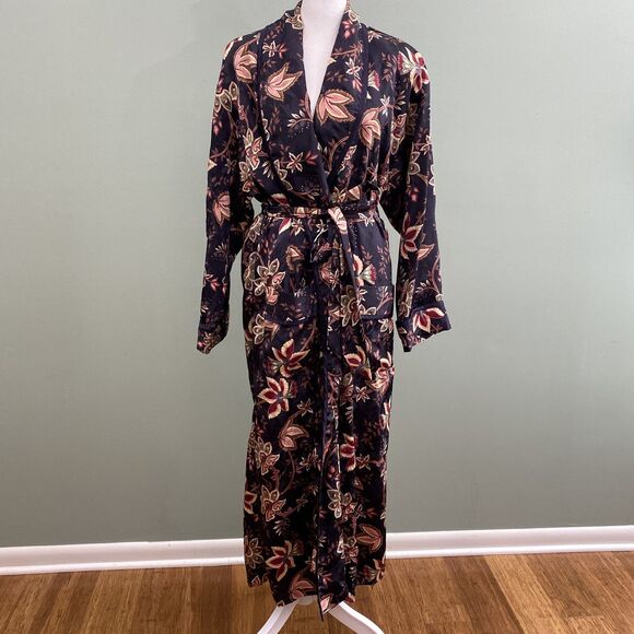Vintage Victorias Secret Robe Floral Satin Long Womens Small Purple Belted 90s