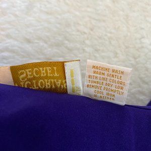 There is a matching purple tie at the waist, that ties on the side with ruching detail