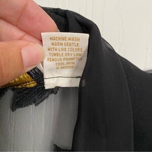 Vintage Victoria’s Secret (Gold Label) sheer robe. Features lightweight floral fabric, sheer trim, belt loops, pockets, inside tie closure, and shoulder pads. Excellent condition. No damage or stains.