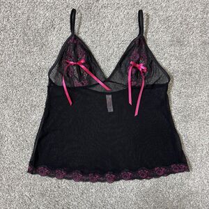 Vintage Victorias Secret Shirt Womens Medium Black Lace Cami Top Sexy Y2K