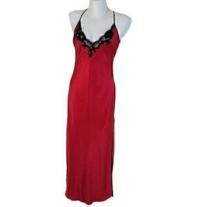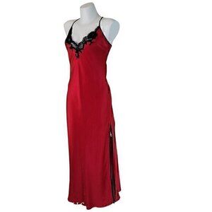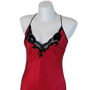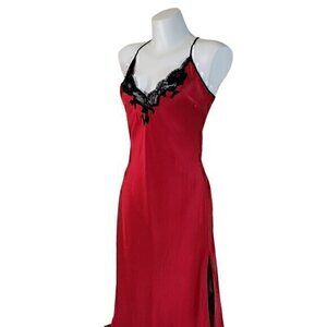 Vintage Victoria's Secret Silk Red Black Slip Dress Gown L