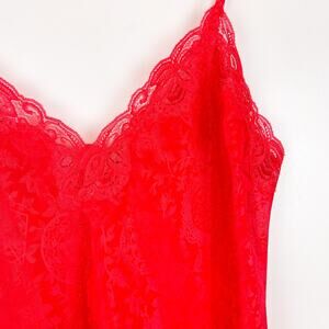 Vintage Victoria’s Secret Size S Lace Trim Slip Dress Bright Red Satin