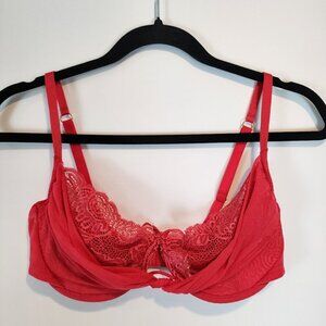 Vintage Victoria's Secret VERY SEXY Sheer Lace Twist Front Push Up Bra RED