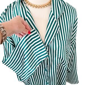 Fab vintage Victoria’s Secret gold label striped button down pajama top/blouse! Covered buttons. Surely originally intended to be a pajama top, but the great thing about fashion is you can wear things however you want :-)